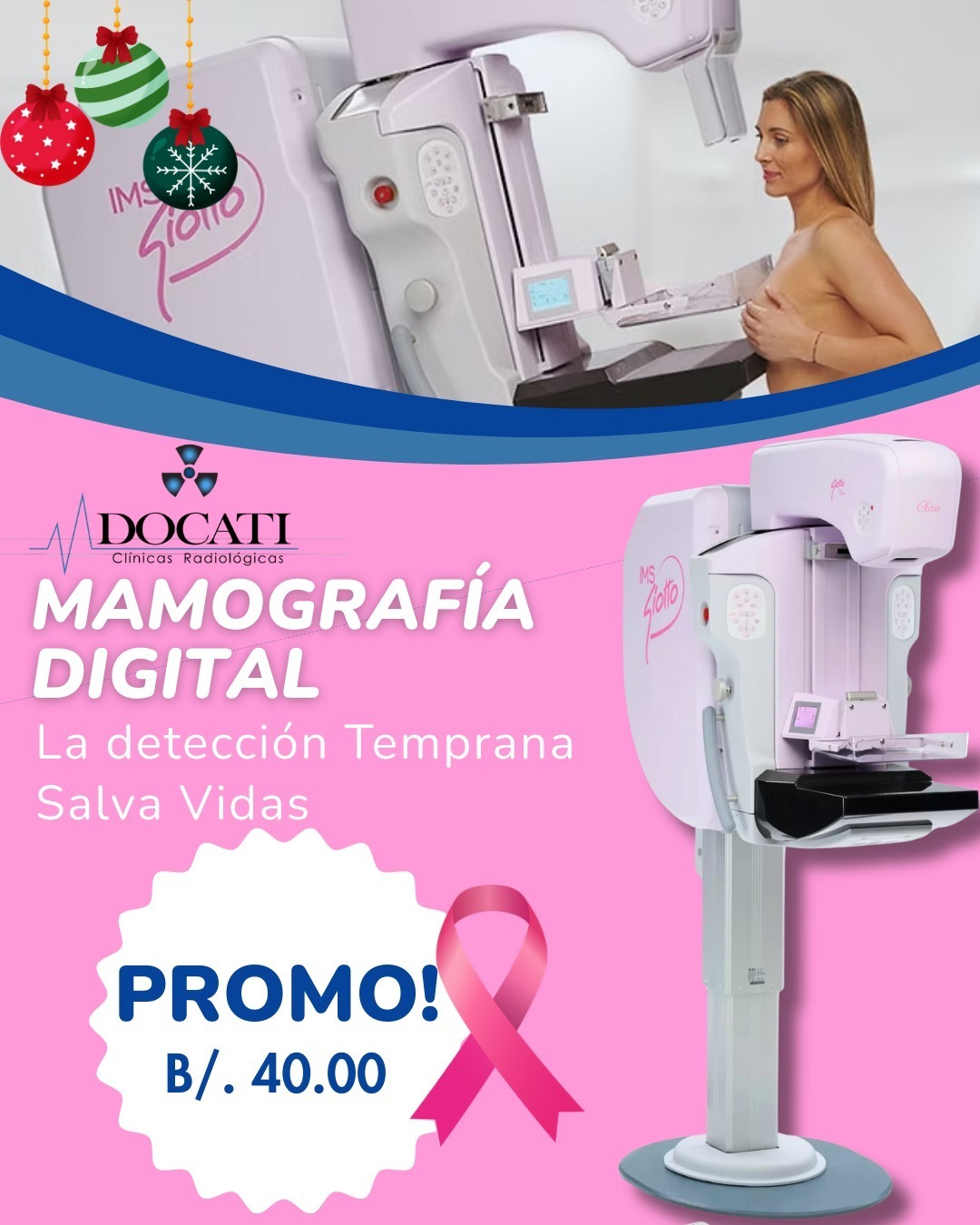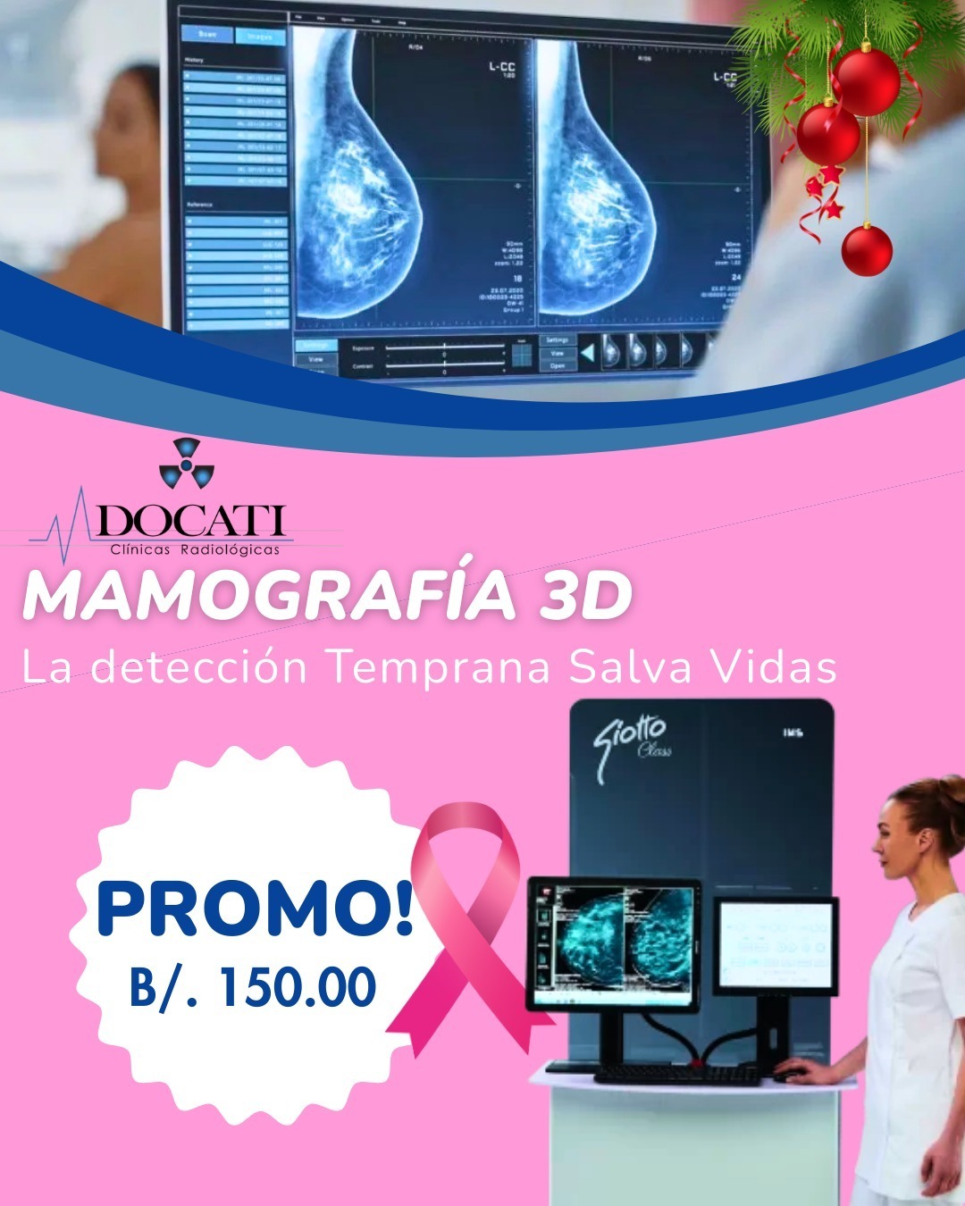 En Clínica Docati, nos enorgullece contar con el más moderno mamógrafo con aplicación de tomosíntesis mamaria, una tecnología avanzada que mejora la precisión en la detección temprana del cáncer de mama.
